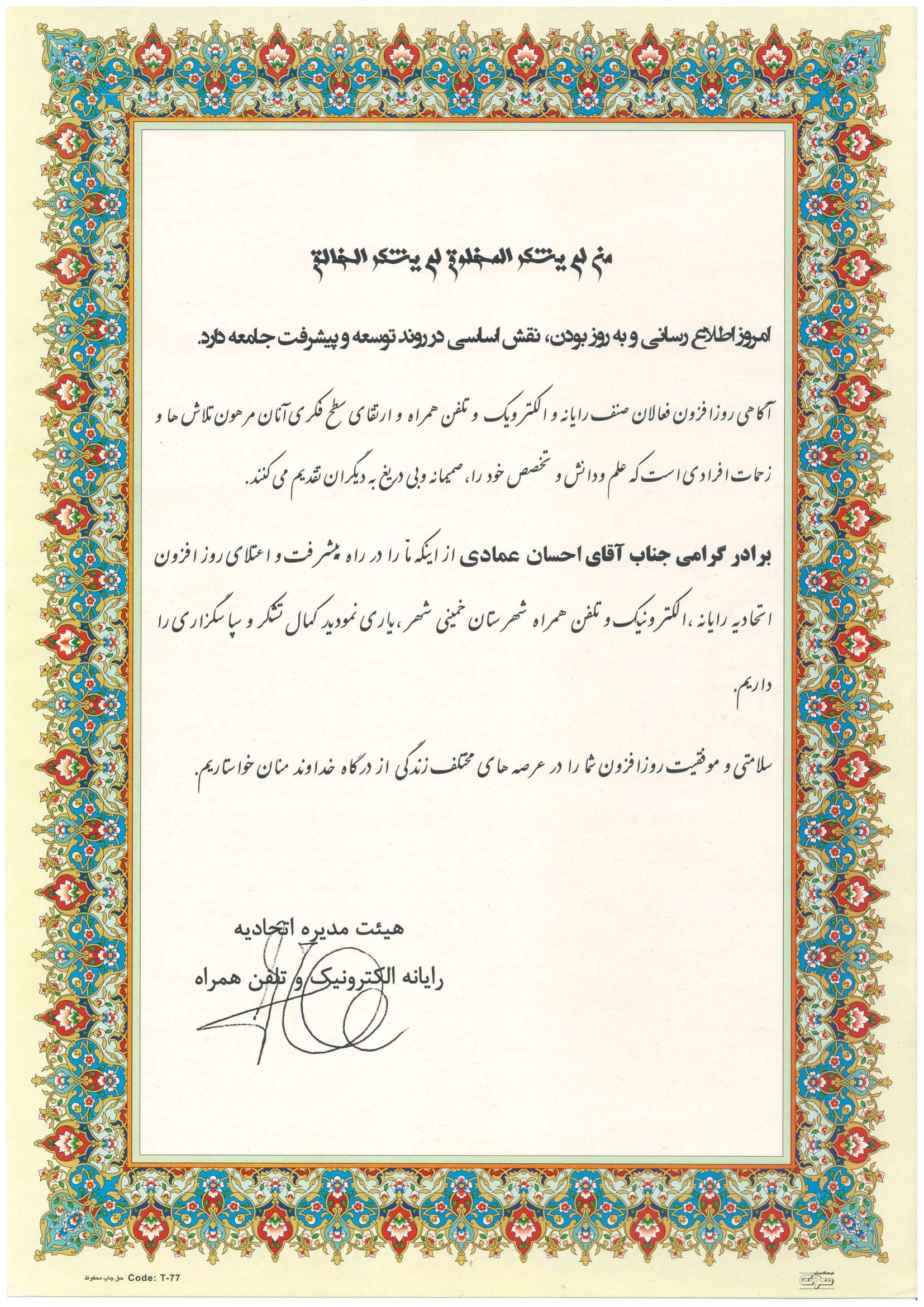 مدیر و موسس تدبیر - بیش از ۱۵ سال سابقه در زمینه سخت افزار، نرم افزار و شبکه های کامیپوتری و هوشمند سازی مدارس و فروش و خدمات نرم افزار های حسابداری - روابط عمومی بالا و رهبری تیم مشاور - انفورماتیک و فعال در زمینه رشد فردی و سازمانی - همراه و مشاور