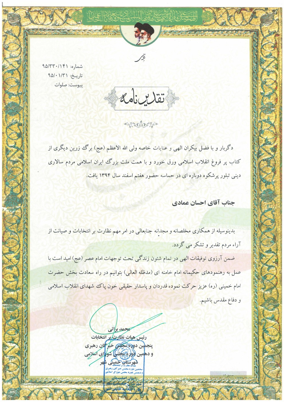 از سال ۱۳۸۶ ناظر بودم و از سال ۱۴۰۰ هم ناظر مسئول شدم و تقدیرنامه دارم